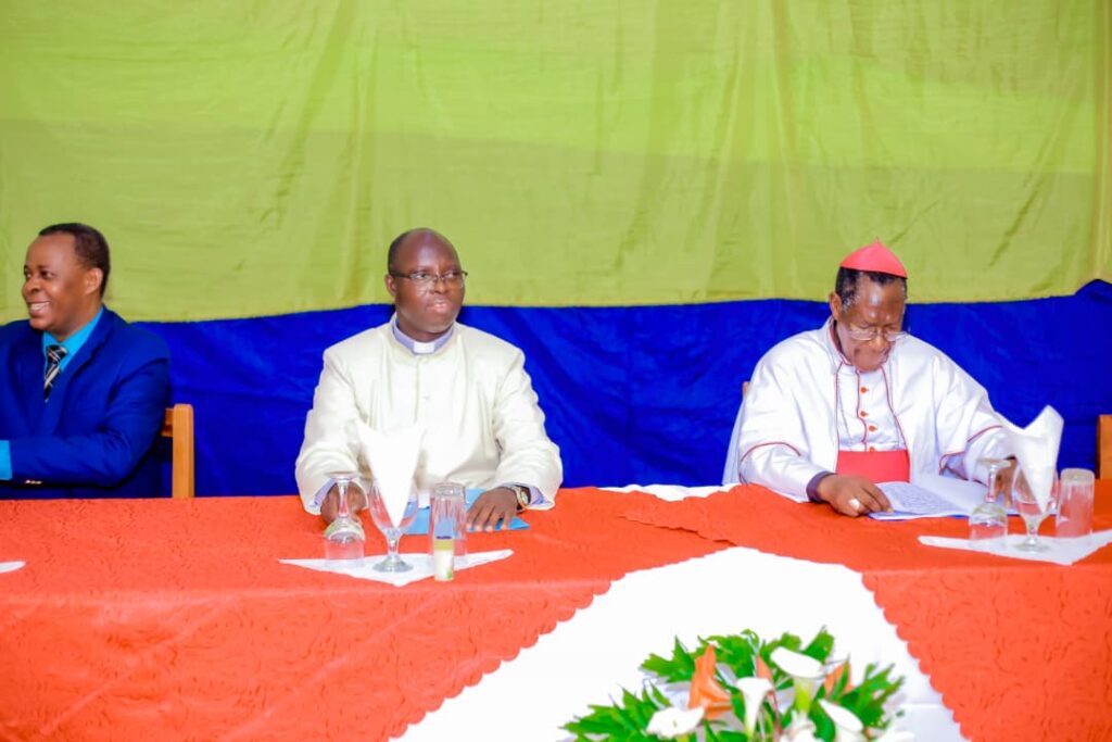 La célébration eucharistique achevée, un double événement a suivi: l’acte d’ouverture solennelle de l’année de formation et les agapes fraternelles. C’est l’allocution du Recteur qui a rompu le ruban. Il a profité de l’occasion pour, d’emblée, remercier tous ceux qui ont répondu avec générosité à ce grand rendez-vous. Il a par après félicité et encouragé les jeunes prêtres fraîchement ordonnés et les nouveax candidats admis aux ordres sacrés. Il a enfin eu le plaisir de présenter et d’expliciter, en long et en large, le thème de l’année de formation : «Assidus à la prière pour vivre la relation intime avec le Christ et la communion fraternelle ». Un thème qui fait écho à la communauté primitive dont les disciples étaient «assidus aux enseignements des apôtres, à la communion, à la fraction du pain et aux prières » (Ac 2, 42). Aussi a-t-il garanti que les formateurs ne ménageront aucun effort pour exploiter ce thème quasi inépuisable, y compris toutes les dimensions de la formation intégrale selon la Ratio Fundamentalis Institutionnalis Sacerdotalis. C’est ainsi qu’il a accueilli, à bras ouverts, le nouveau formateur connu sous le nom de M.l’Abbé Dieudonné Marie Déogratias KRISTUHAMBAYE.